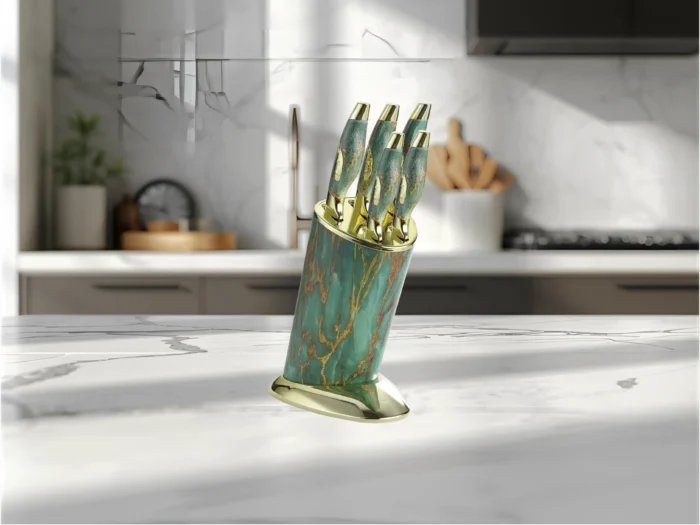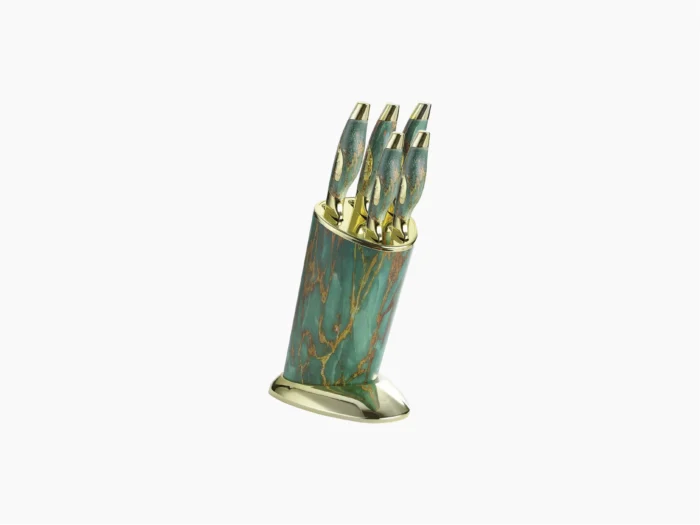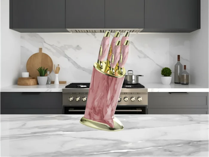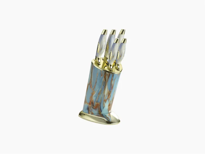 طقم سكاكين نجمة ذهبي نيو ماربل – ٥ قطع مع استاند – ماركة هومي تاون©