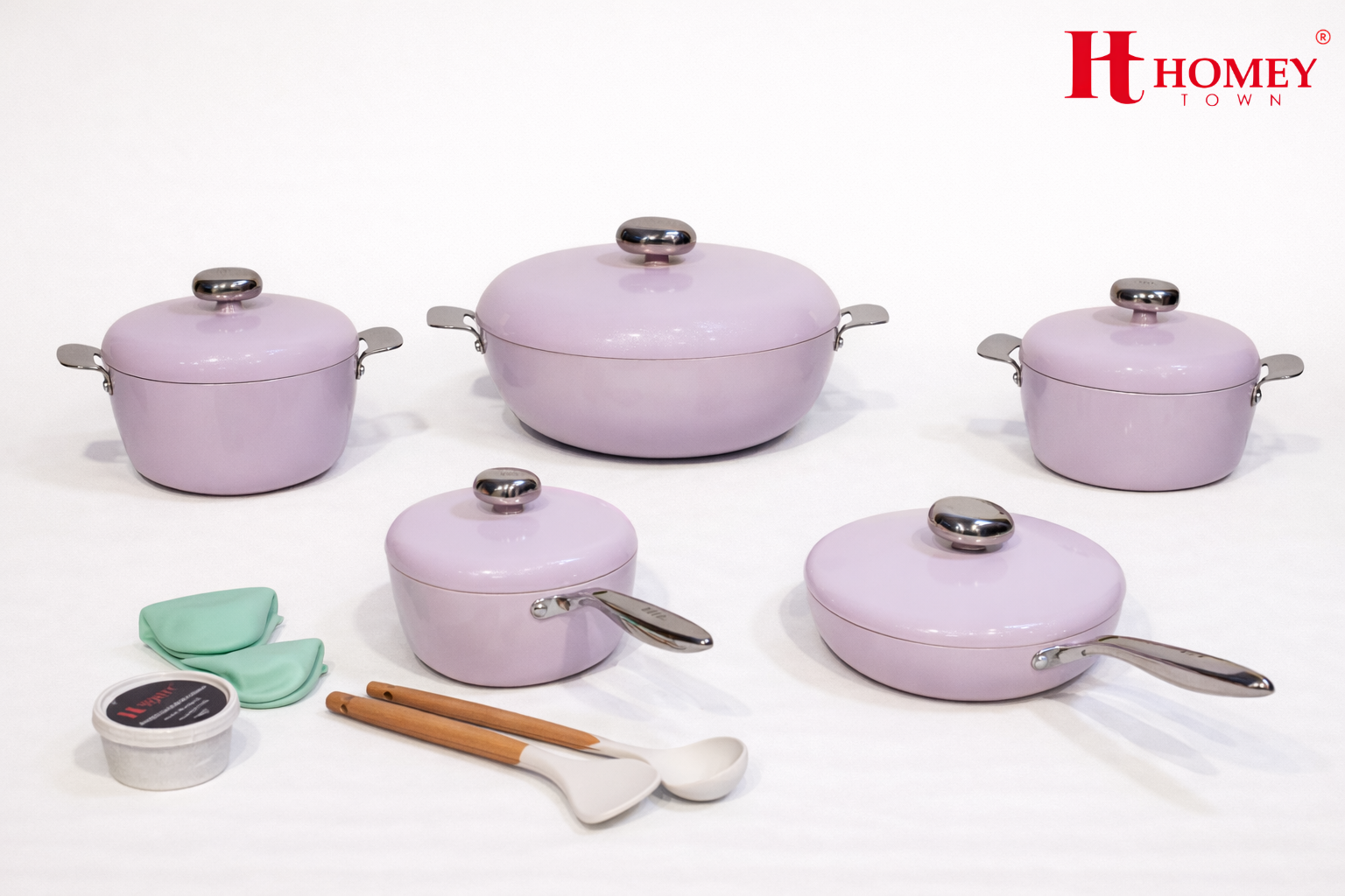 The set is ideal for everyday use and gives you a versatile selection of pieces to help prepare a wide variety of meals with ease, whether for quick daily cooking or for larger family meals and gatherings. It also features a modern design and calm colors that add a distinctive touch to your kitchen.